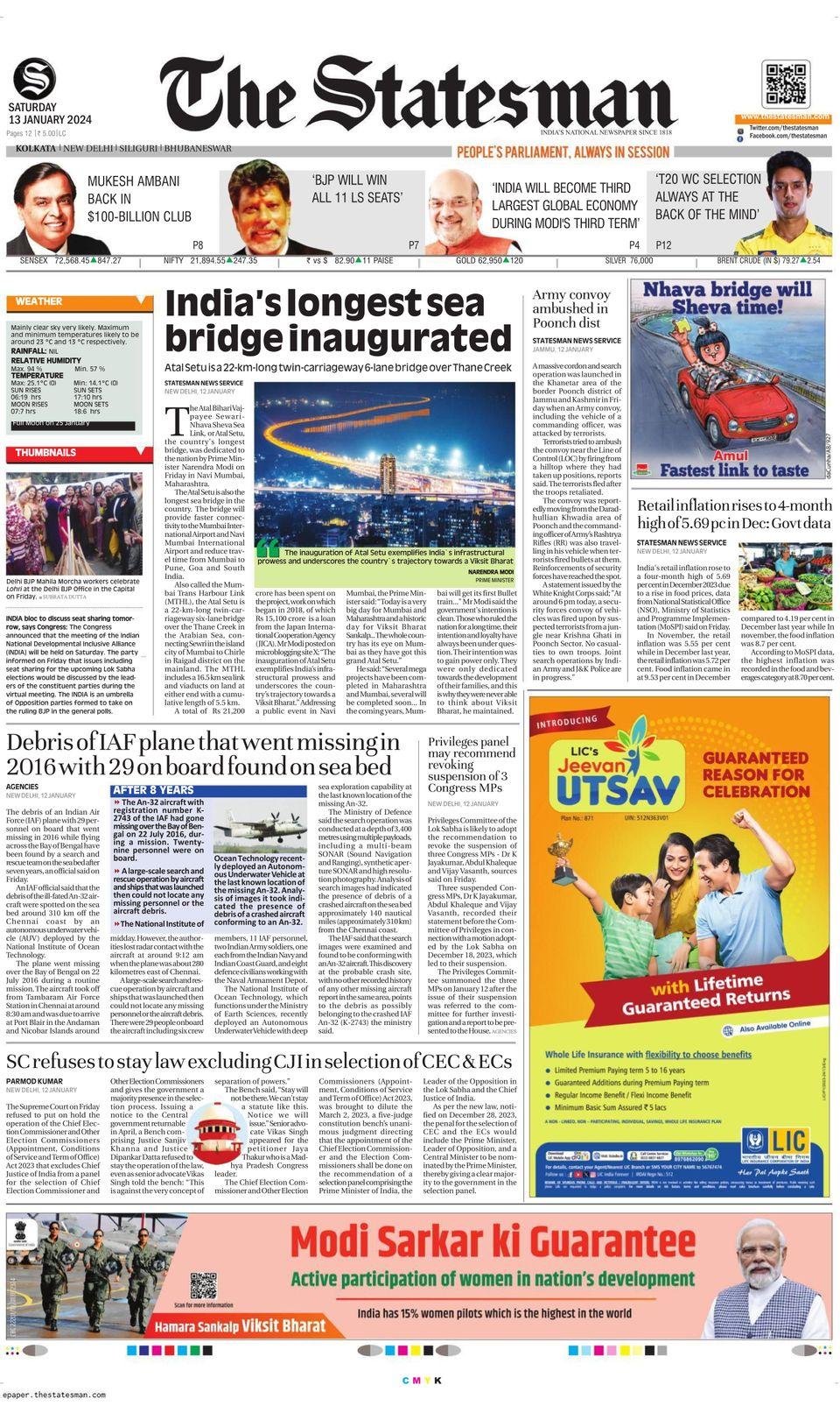 The Statesman Kolkata January 13, 2024 (Digital) DiscountMags.com